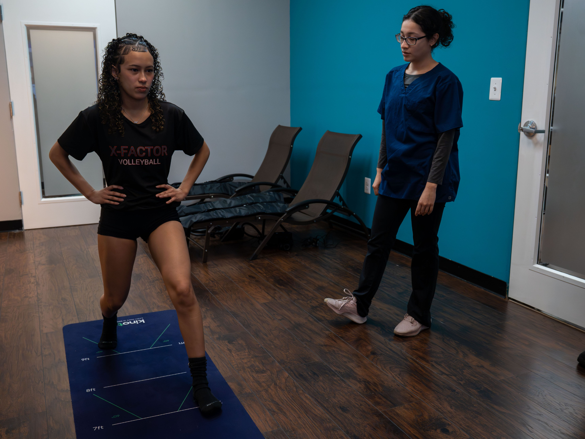 Students rotate through supervised PT technician responsibilities, including one-on-one and small-group exercise programming for patients and athletes, exercise support, use of recovery and modalities equipment, clinic and equipment setup, professional communication, and hands-on exposure to real clinic workflow and documentation routines.
